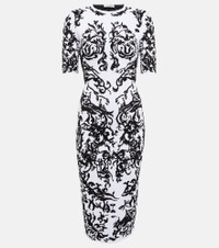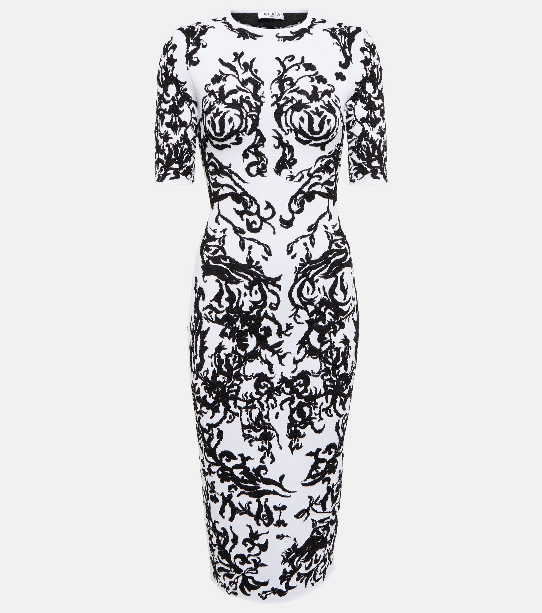 Known for sculptural cuts and high-quality craftsmanship, Maison Alaïa creates elegant styles for the modern woman. This figure-hugging midi dress is crafted from a stretchy material and features an all-over print inspired by floral ceramics. Product Details - Made in Italy - Material III: 100% viscose - Care instructions: dry clean - Material II: 56% viscose, 25% polyamide, 11% polyester, 8% polyurethane - Closure: zipped side - Designer color name: Blanc/Noir - Material: 21% polyamide, 4% elastane, 61% viscose, 12% polyester, 2% polyurethane - Item number: P00753025 Size & Fit - True to size - Fitted - Mid-weight material - The model seen in the picture is 178cm-5'10" and wearing a size FR 36