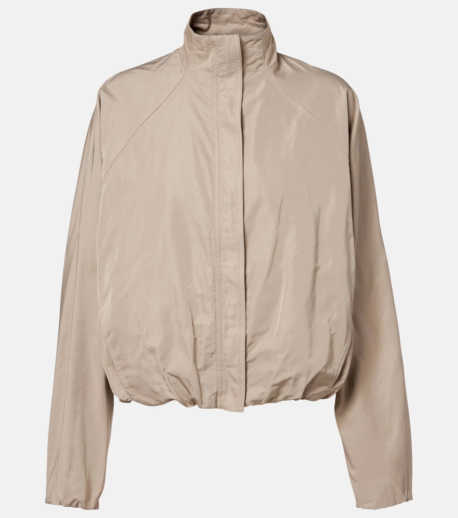 Upholding the legacy of Azzedine Alaia, the maison’s collections achieve an artful balance between sculptural and wearable. This modern jacket is crafted from shiny radzimir and comes with a high neckline and a bubble hemline. Product Details - Material: 70% polyester, 30% silk - Care instructions: dry clean - Made in Italy - Color: beige - Designer color name: Sable - Lining: 100% polyamide - Closure: zipped front - Pockets: side slit pockets - Drawstring at the hem for adjustable fit - Item number: P01118700 Size & Fit - True to size - Designed for a loose fit - Adjustable hem - Elasticated hem - Non-stretchy fabric - Falls to the hip - Height of model is 178cm-70" and wears a size FR 34