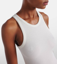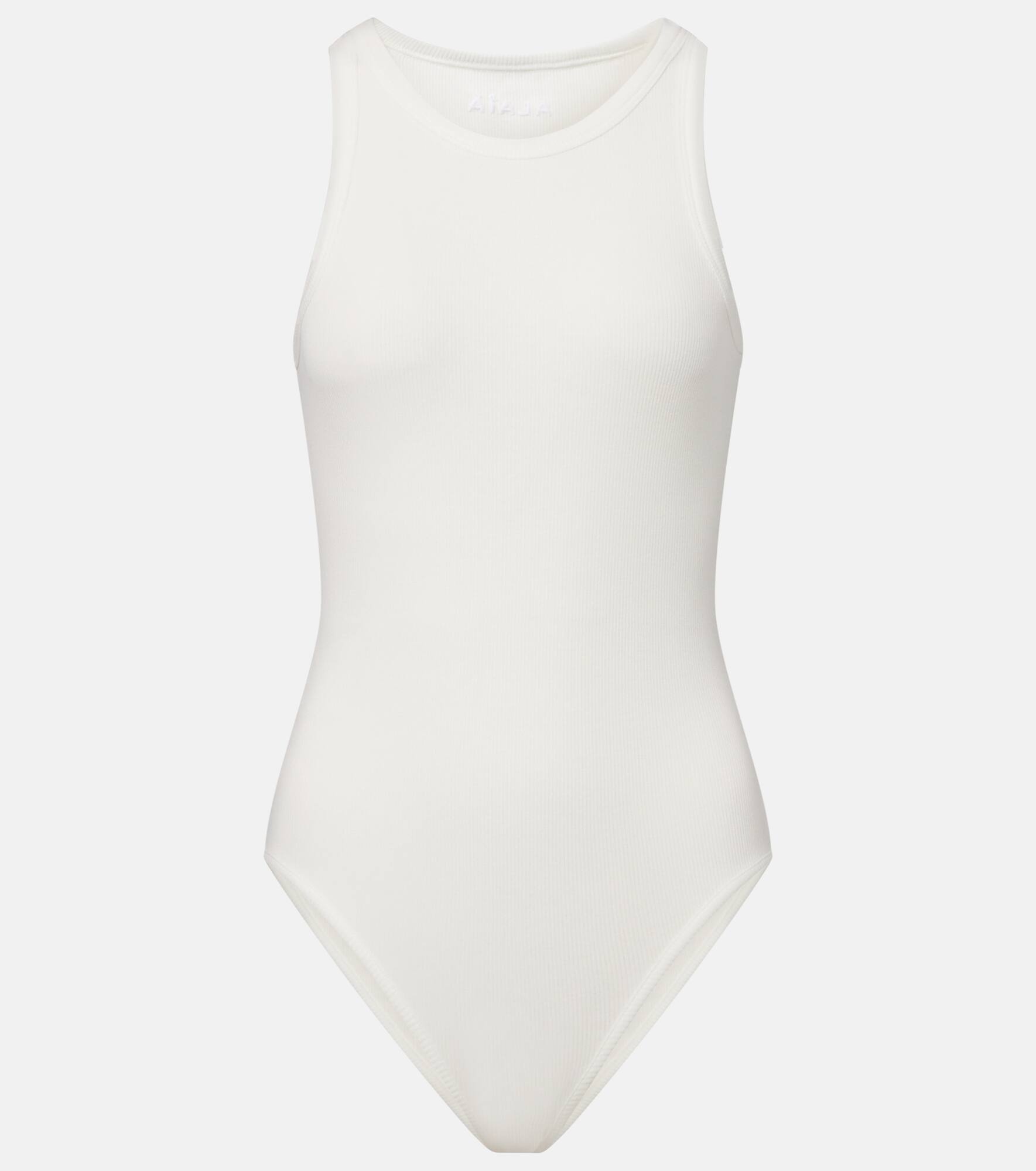 Honoring Azzedine Alaia’s legacy, the maison’s sculptural yet wearable collections hold an artful balance that only the most skilled designers can achieve. This Italian-made bodysuit is ribbed-knit to fit and sculpt the figure. Product Details - Material: 48% cotton, 47% viscose, 5% elastane - Care instructions: specialist clean - Made in Italy - Designer color name: Blanc Casse - Item color: white - Collar: crewneck - Closure: snap-buttoned fastenings - Item number: P01047424 Size & Fit - True to size - Fitted - Stretchy fabric - High-cut leg - Height of model is 180cm-71" and wears a size FR 36