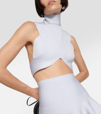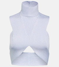 This ribbed-knit crop top from Alaïa is an elegant separate you can wear from dinner to dancefloor. It has a sculpting cut with a high neck and a zipped back. Product Details - Material: 83% viscose, 17% polyester - Care instructions: do not wash - Made in Italy - Item number: P00746837 Size & Fit - True to size - Low back - Fitted - Mid-weight material - Cropped - The model seen in the picture is 178cm-5'10" and wearing a size FR 36