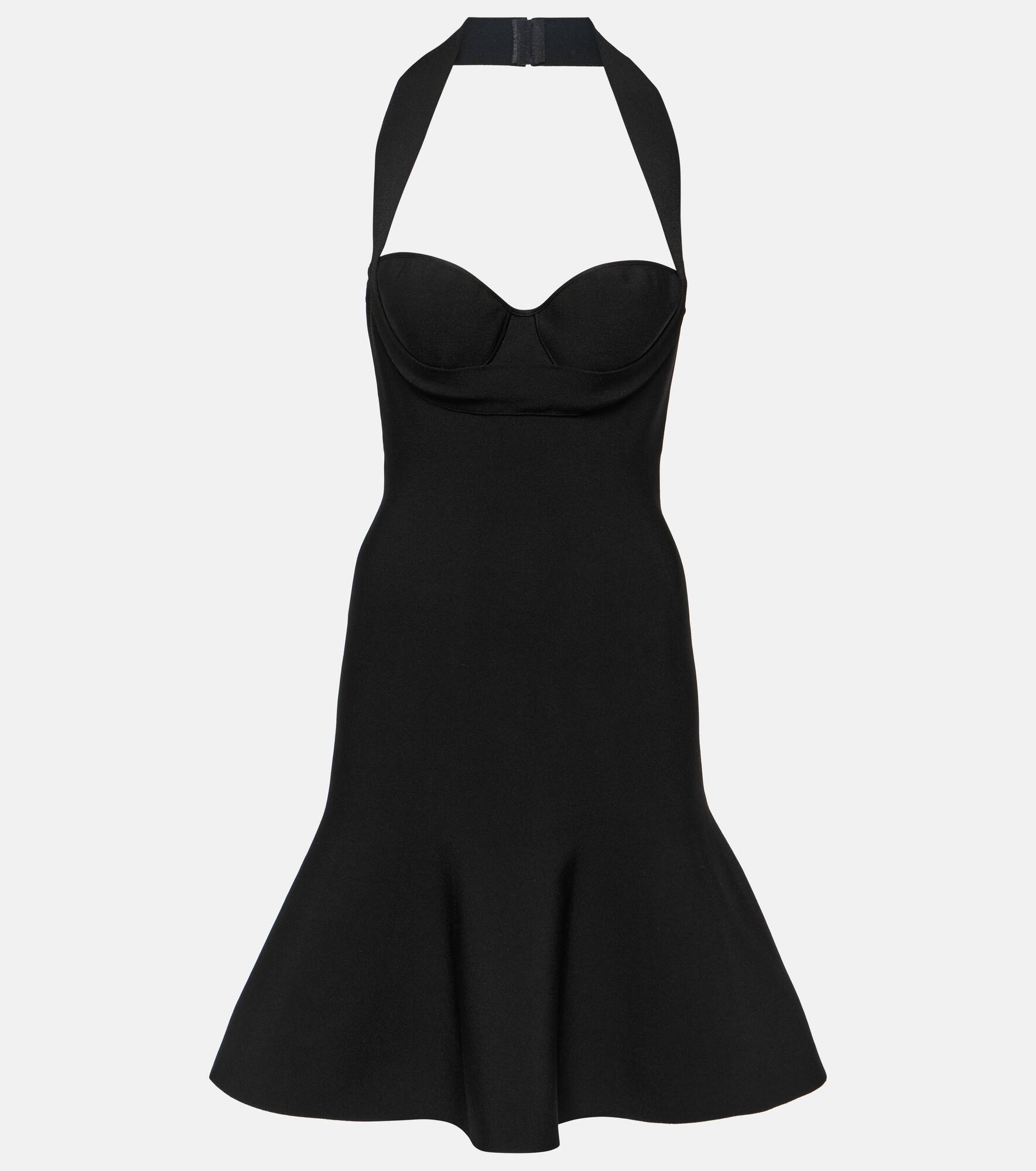 Ribbed-knit halterneck minidress