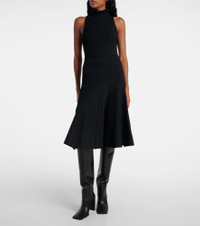 Honoring Azzedine Alaia’s legacy, Alaia’s sculptural yet wearable collections hold an artful balance that only the most skilled designers can achieve. This sleeveless midi dress is characterized by its ruffled turtleneck and ribbed-knit construction. Product Details - Material: 69% viscose, 23% polyester, 7% polyamide, 1% elastane - Care instructions: dry clean - Made in Italy - Designer color name: Noir Alaia - Item color: black - Trim: 75% viscose, 25% polyester - Collar: turtleneck - Item number: P01084975 Size & Fit - Fits large to size - we recommend trying one size smaller - Fitted - Stretchy fabric - The model seen in the picture is 178cm-5'10" and wearing a size FR 34