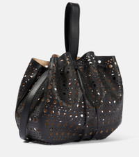 Shaped into a softly structured silhouette with a drawstring closure and top handle, the Rose Marie 28 tote bag is crafted from smooth leather. Alaïa's iconic Vienne motif is an openwork laser-cut pattern that's inspired by lace and architecture. Product Details - Material: leather - Lining: leather - Made in Italy - Designer color name: Noir - Top handle, Detachable, adjustable shoulder strap - Closure: push-clasp fastening - Comes with dust bag - Item number: P00836884 Size & Fit - Height 27cm-10.5" - Width 31cm-12" - Depth 13cm-5" - Length of handle 34cm-13.5" - Min. length shoulder strap 90cm-35.5" - Max. length shoulder strap 102cm-40"