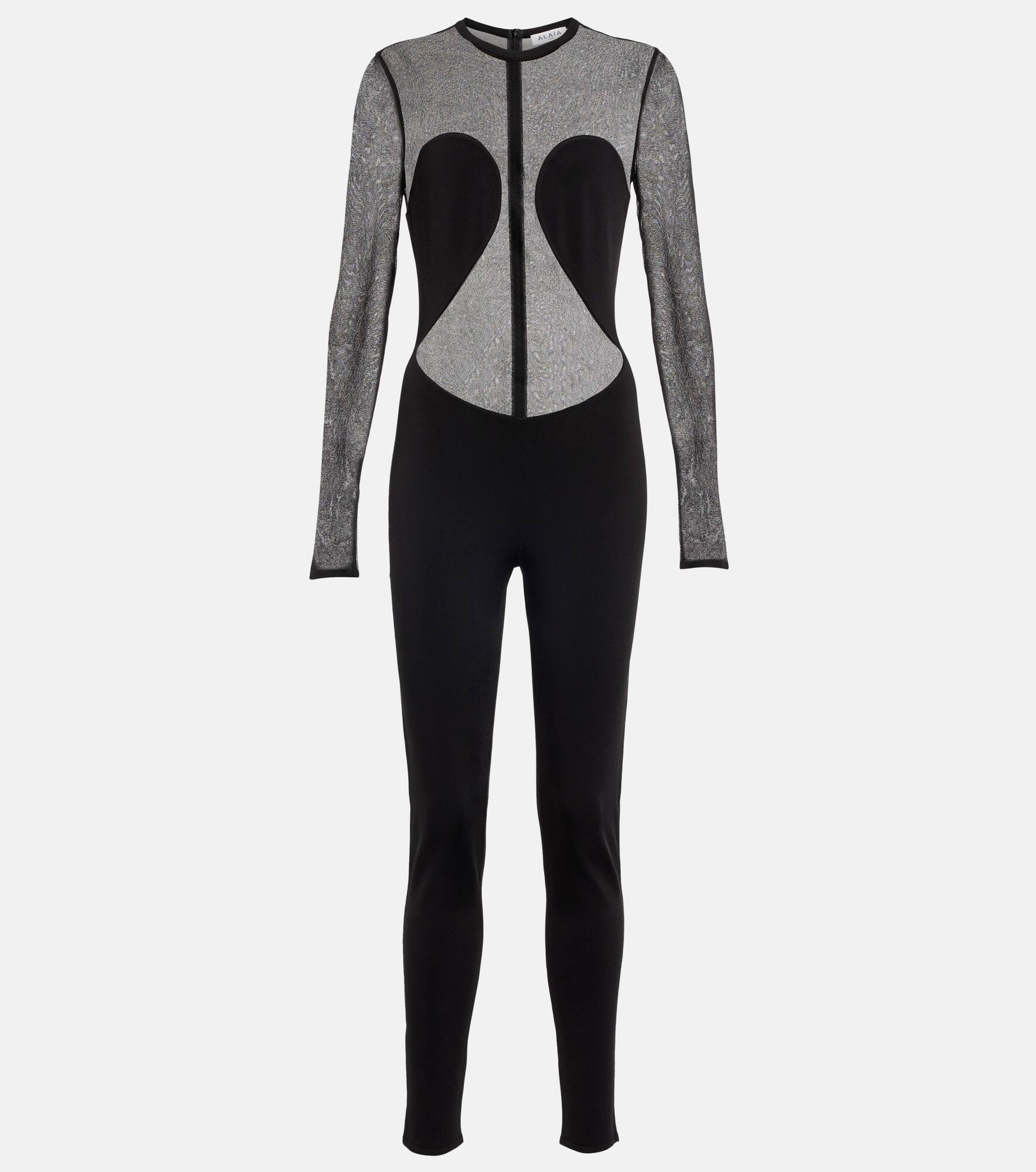 This alluring bodysuit from Alaïa is made silk crêpe, and is shaped with long sleeves and partial coverage. Product Details - Material: 81% viscose, 1% polyurethane, 18% polyamide - Made in Italy - Closure: zipped back - Designer color name: Noir Alaia - Material II: 100% silk - Care instructions: dry clean - Item number: P00752751 Size & Fit - True to size - Fitted - Mid-weight material - Stretchy fabric - Inseam length approx: 72cm-28.5" - The model seen in the picture is 178cm-5'10" and wearing a size FR 36