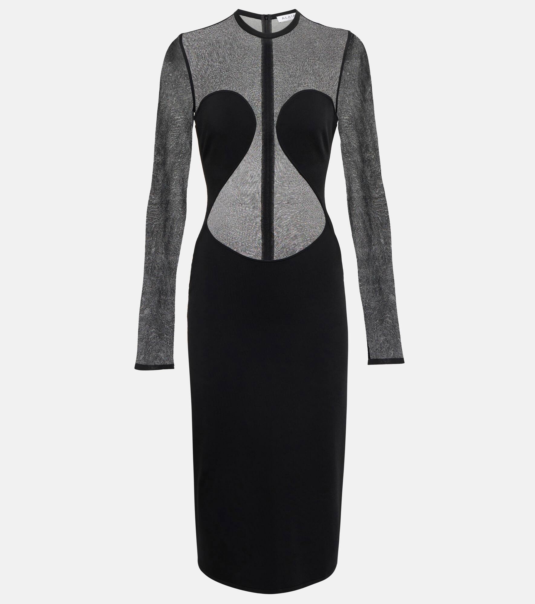 Tune into the trend for semi-sheer styles with this minidress from Alaïa. It's shaped into an artful design with skin-revealing mesh panels that are framed by opaque jersey inserts for modesty. Product Details - Material: 81% viscose, 1% polyurethane, 18% polyamide - Made in Italy - Closure: zipped back - Designer color name: Noir Alaia - Material II: 100% silk - Care instructions: dry clean - Item number: P00700886 Size & Fit - True to size - Fitted - Mid-weight material - The model seen in the picture is 178cm-5'10" and wearing a size FR 36