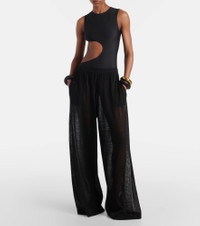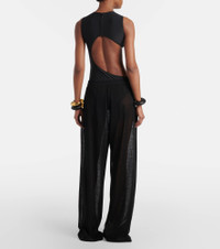 Product Details - Material: 90% linen, 10% silk - Care instructions: specialist clean - Made in Italy - Designer color name: Noir Alaia - Item color: black - Trim: 85% linen, 9% silk, 5% polyamide, 1% elastane - Elasticated waistband - Item number: P01047442 Size & Fit - True to size - Fits large to size - we recommend trying one size smaller - Sheer - Elasticated waist - Non-stretchy fabric - Wide-leg - High-waisted - Height of model is 180cm-71" and wears a size FR 34
