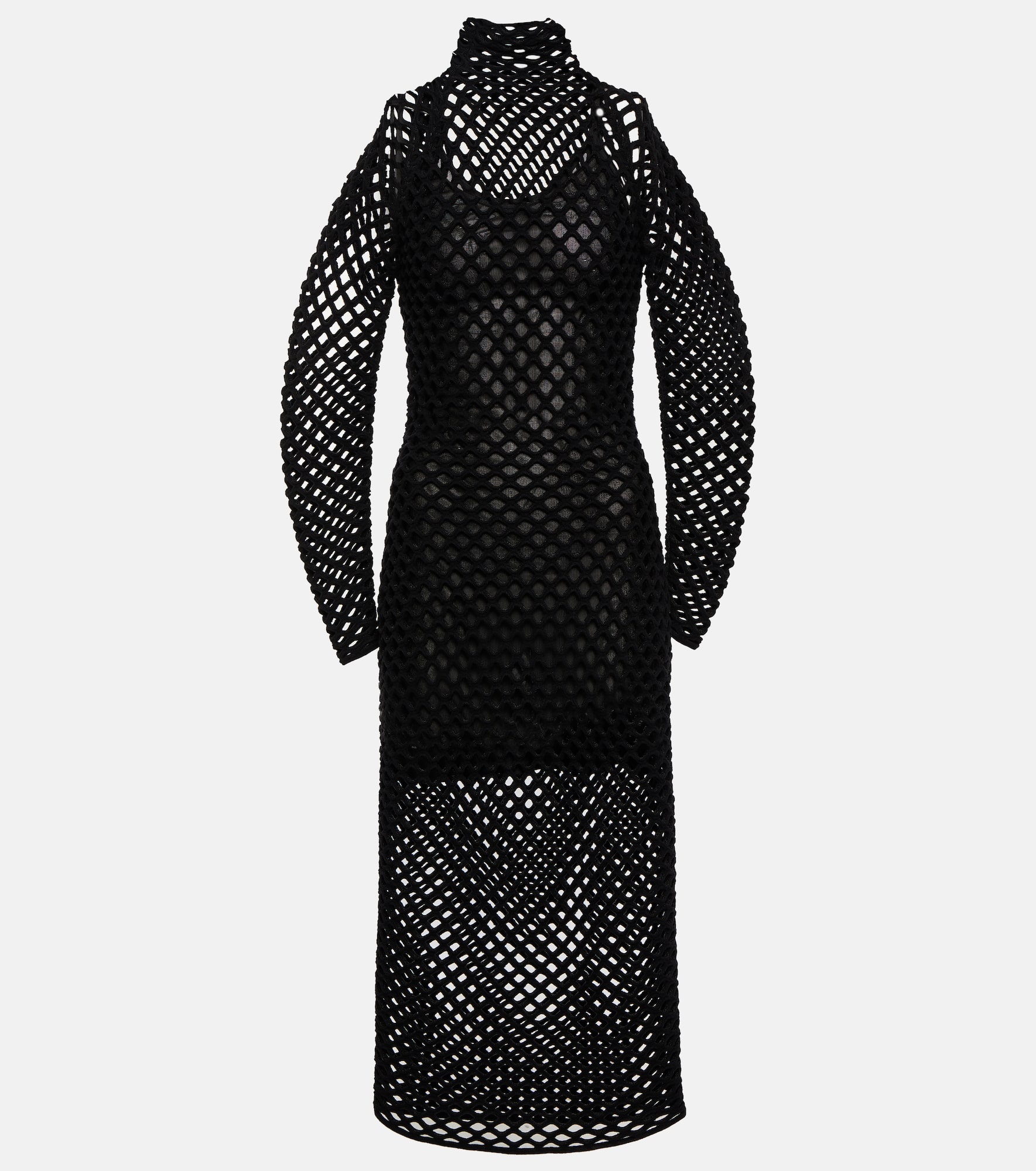 Layer this gown from Alaïa over more of your favorite separates for a show-stopping ensemble. Made from an alluring, sheer net fabric, it’s shaped for a figure-hugging fit with a turtleneck. Product Details - Made in Italy - Lining: 98% viscose - Material: 1% elastane, 42% viscose, 10% polyamide, 18% polyester, 29% wool - Designer color name: Noir Alaia - Care instructions: dry clean - Item number: P00846573 Size & Fit - Fits small to size - we recommend trying one size larger - Fitted - Mid-weight material - The model seen in the picture is 178cm-5'10" and wearing a size FR 38