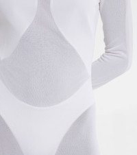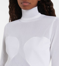 This maxi dress from Alaïa is designed for a second-skin fit. Made from a soft knitted voile with a semi-sheer look, this white design has a turtleneck collar. Product Details - Material: 24% polyamide, 76% viscose - Care instructions: dry clean - Made in Italy - Designer color name: Blanc - Item number: P00634459 Size & Fit - True to size - Semi-sheer - Fitted - Lightweight material - The model seen in the picture is 178cm-5'10" and wearing a size FR 36