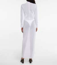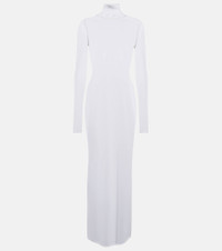 Sheer turtleneck jersey maxi dress