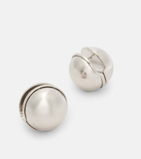 These orb-shaped silver-plated earrings from Alaia feature a distinctive futuristic design. Crafted in Italy, this design reflects an artistic balance between elegance and innovation that only the most skilled designers can achieve. Product Details - Material: brass - Made in Italy - Item color: silver - Item number: P01058168 Size & Fit - Length 2,8cm-1" - Depth 2,8cm-1"