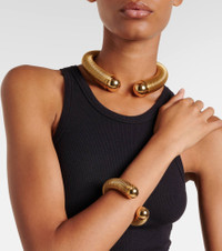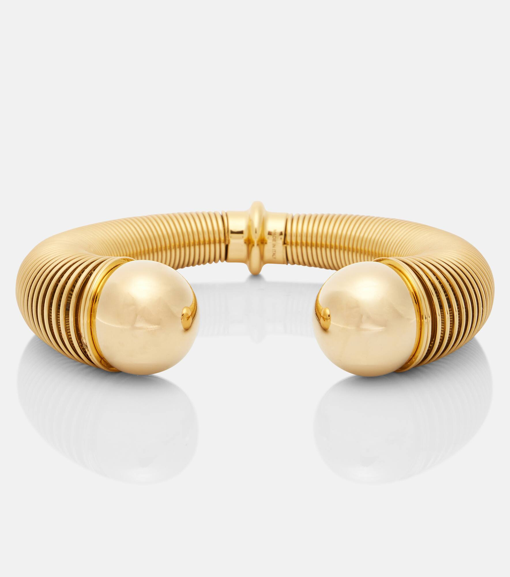 A Parisian fashion maison with a couture soul, Alaia was founded in 1964 by its visionary namesake, Azzedine Alaia. The Spiral bracelet is crafted from slender, twisted wire and finished with matching bead embellishments at each end. Product Details - Material: stainless steel, brass - Made in Italy - Item color: gold - Includes: dust bag, box - Item number: P01058174 Size & Fit - Max. width 2cm-1" - Circumference 17.5cm-7" - Opening 2cm-1"