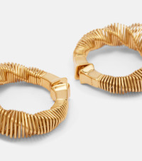 Alaia's designs achieve an artful balance between sculptural and wearable. As the name suggests, the Square Spiral hoop earrings feature an eye-catching geometric design that twists around itself. Product Details - Material: brass - Made in Italy - Item color: gold - Closure: pin fastening - Includes: box, dust bag - Item number: P01115372 Size & Fit - Inner diameter 3cm-1" - Min. width 0,4cm-0" - Max. width 1,2cm-0.5"