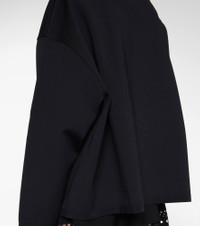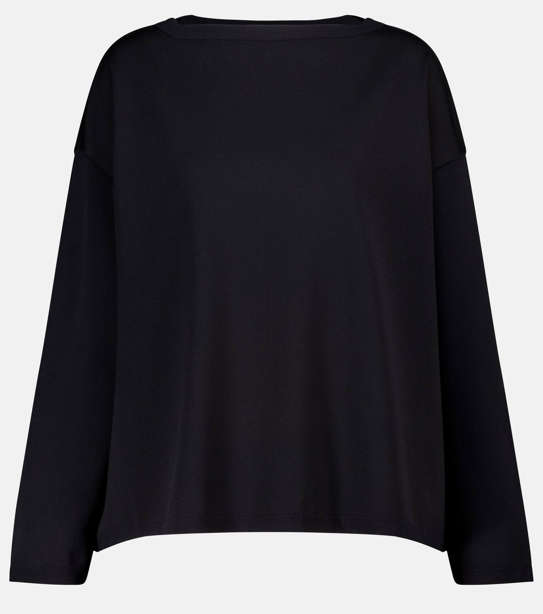 Conjure a minimalist mood with this black sweater by Alaïa. Made from a comfortable stretch-knit fabric, it comes in a relaxed fit with long sleeves and a straight hem. Product Details - Material: 16% polyester, 5% polyamide, 1% elastane, 78% viscose - Care instructions: dry clean - Made in Italy - Designer color name: Noir - Item number: P00528065 Size & Fit - True to size - Dropped shoulders - Designed for a loose fit - Mid-weight material - Falls below the hip - The model seen in the picture is 178cm-5'10" and wearing a size FR 36