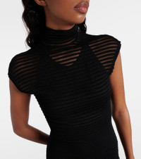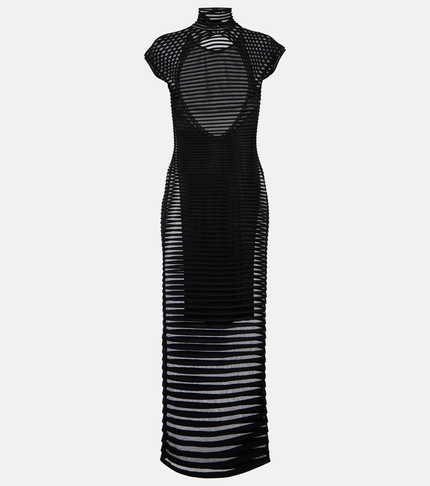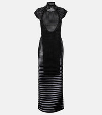 Striped crêpe-paneled gown