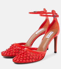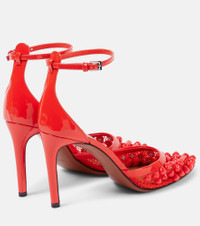 Studded mesh and leather pumps