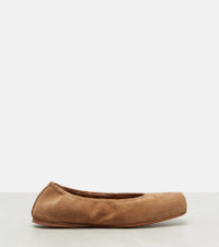 Alaia’s collections hold an artful balance that only the most skilled designers can achieve. These elegant square-toed ballet flats are crafted in Italy from smooth suede and feature an elastic upper for more flexibility. Product Details - Upper: calf leather (suede) - Lining: leather - Sole: leather insole and sole - Toe shape: square toe - Made in Italy - Includes: dust bags, shoe box - Designer color name: Terre D'Ombre - Item color: brown - Item number: P01045906 Size & Fit - True to size - Slightly narrow at the seam - European sizes - 1,5cm-0.5" heel (size EU 38)