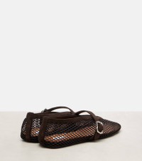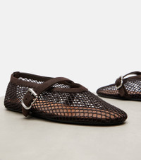 These mesh ballet flats from Alaia are a fan-favorite style revisited. This pair is finished with tonal suede trims, rounded profiles, and silver-toned buckles. Product Details - Upper: goat leather (suede), fabric - Lining: leather - Sole: fabric insole, rubber sole - Toe shape: almond toe - Made in Italy - Includes: dust bags, shoe box - Designer color name: Brun Fonce - Item color: brown - Closure: buckle fastening - Item number: P01045937 Size & Fit - True to size - European sizes