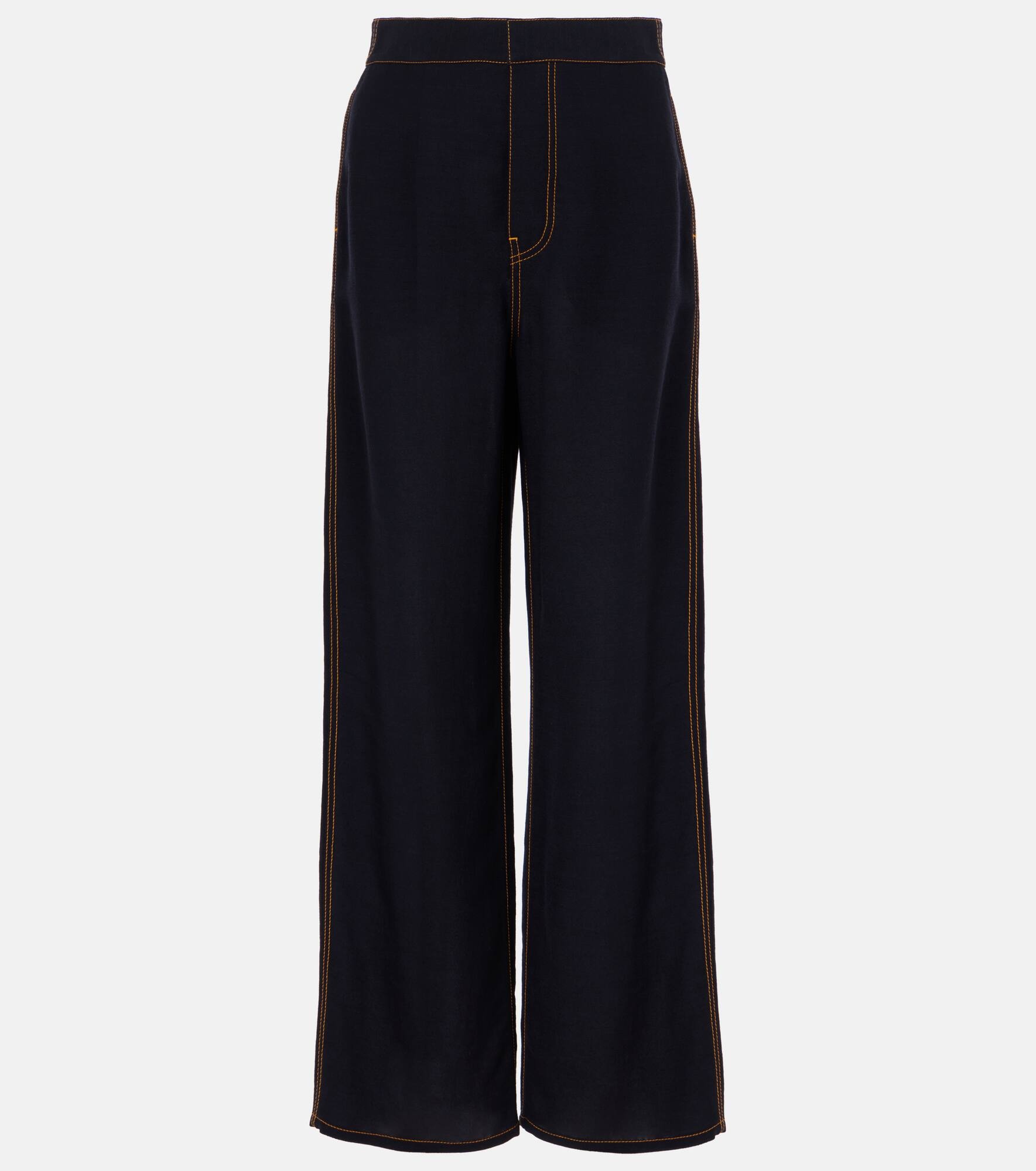 Tailored wool-blend georgette wide-leg pants