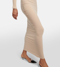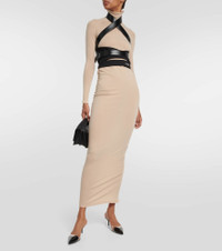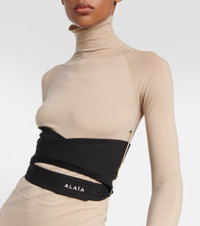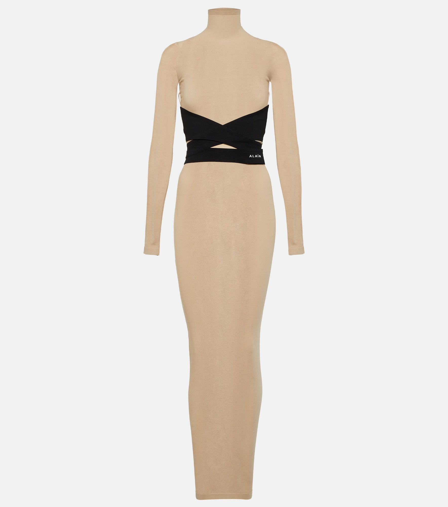 Encapsulating Alaïa’s love for sculptural silhouettes, this maxi dress features a detachable, VELCRO®-fastened, logo-detailed belt. It’s knit for a second-skin fit from stretchy jersey with a turtleneck. Product Details - Made in Italy - Material: 25% polyurethane, 75% polyamide - Detachable belt - Designer color name: Camel Clair - Care instructions: machine wash at 30 degrees - Item number: P00846559 Size & Fit - Fits small to size - we recommend trying two sizes larger - Fitted - Mid-weight material - Stretchy fabric - The model seen in the picture is 178cm-5'10" and wearing a size FR 40
