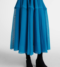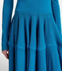 Upholding the legacy of Azzedine Alaia, the maison’s collections achieve an artful balance between sculptural and wearable. This midi dress features a sheath bodice with a turtleneck and a flowing skirt. Product Details - Material: 68% viscose, 31% polyamide, 1% elastane - Care instructions: dry clean - Made in Italy - Color: blue - Designer color name: Turquoise - Item color: blue - Material II: 76% viscose, 24% polyamide - Material III: 64% viscose, 35% polyamide, 1% elastane - Collar: turtleneck - Item number: P01119277 Size & Fit - True to size - Relaxed fit from the hip down - Slightly stretchy fabric - Height of model is 173cm-68" and wears a size FR 36