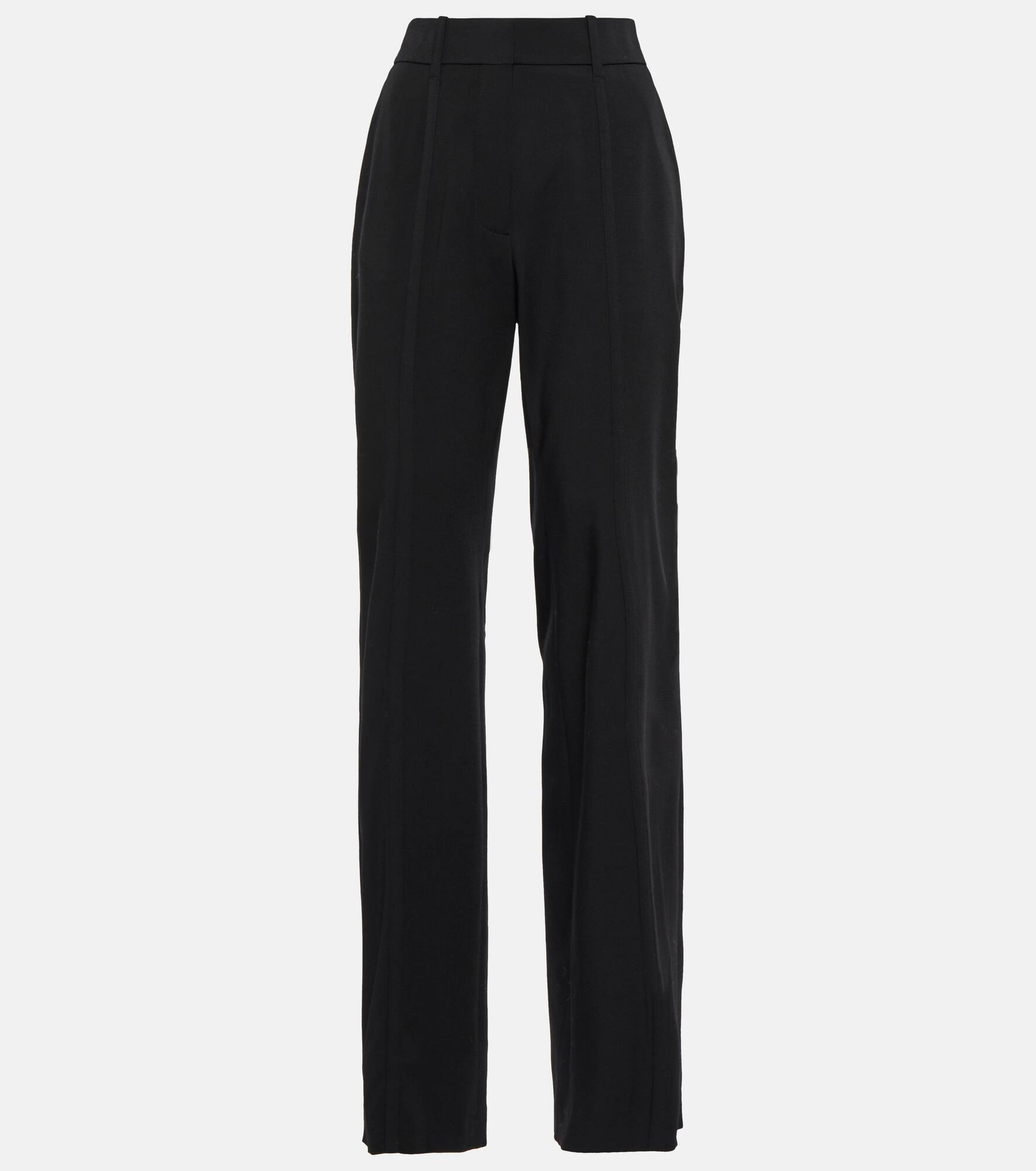 A classic design with a couturier's twist, these pants from Alaïa feature taped front seams that extend from the belt loops. Made in Italy from twill, they have a straight fit and a high rise. Product Details - Lining: 100% cotton, partially lined - Made in Italy - Material: 4% elastane, 56% viscose, 40% wool - Designer color name: Noir Alaia - Belt loops - Pockets: side slit pockets - Care instructions: dry clean - Item number: P00634259 Size & Fit - True to size - Mid-weight material - Straight leg - High-waisted - Inseam length approx: 91cm-36" - The model seen in the picture is 178cm-5'10" and wearing a size FR 36