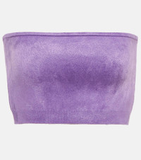 Add texture to your edit with this purple top from Alaïa, which has been crafted from velvet to a bandeau silhouette. Product Details - Material: 6% polyester, 38% wool, 2% elastane, 29% viscose, 25% polyamide - Care instructions: dry clean - Made in Italy - Designer color name: Glycine - Item number: P00753287 Size & Fit - True to size - Strapless - Fitted - Mid-weight material - Cropped - The model seen in the picture is 178cm-5'10" and wearing a size FR 36