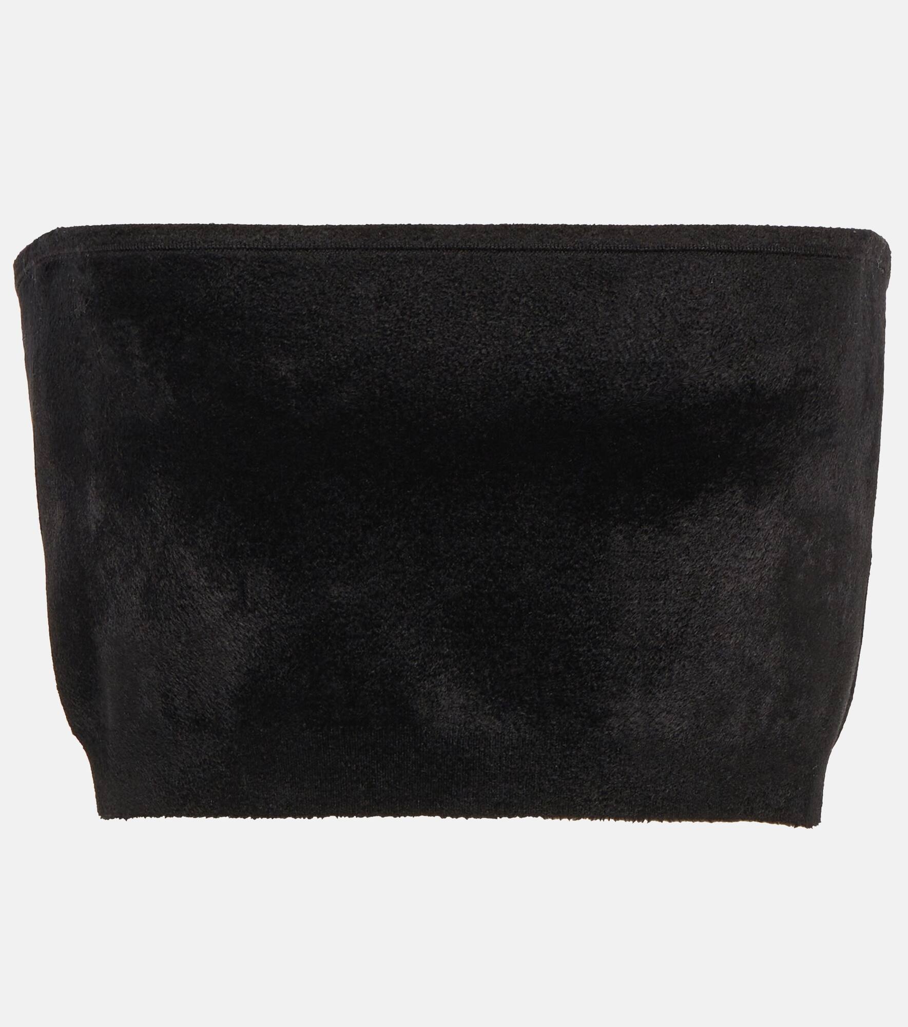 Add richness and texture to your party edit with this bandeau top from Alaïa, which is presented in plush velvet. Product Details - Material: 6% polyester, 38% wool, 2% elastane, 29% viscose, 25% polyamide - Care instructions: dry clean - Made in Italy - Designer color name: Noir Alaia - Item number: P00746571 Size & Fit - True to size - Strapless - Fitted - Mid-weight material - Cropped - The model seen in the picture is 178cm-5'10" and wearing a size FR 36