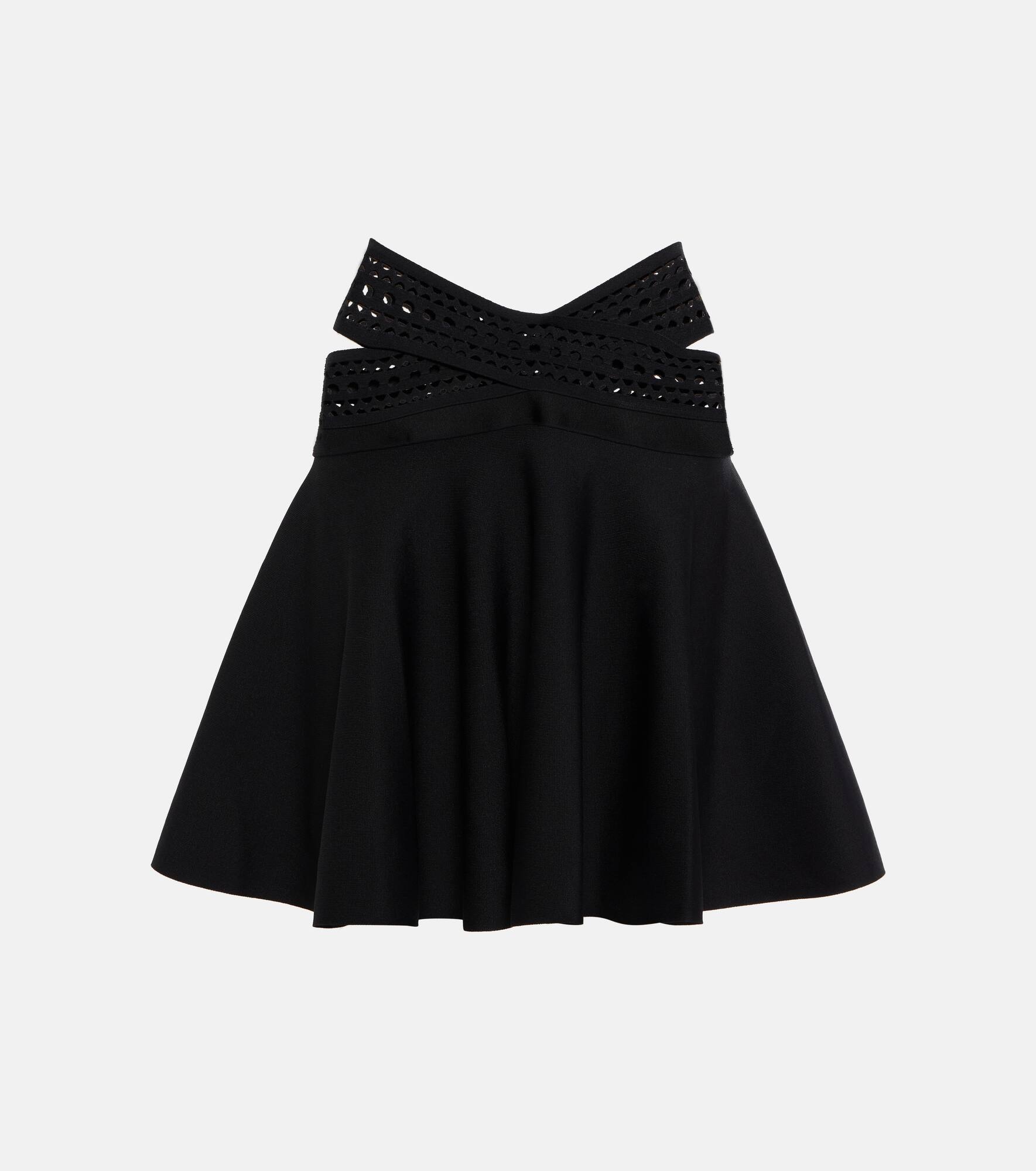 Featured in this miniskirt, Alaïa's iconic Vienne motif is an openwork laser-cut pattern that's inspired by lace and architecture. The artful design features a voluminous A-line silhouette that sits high at the waist and hugs the figure. Product Details - Material II: 6% polyamide, 71% viscose, 23% polyester - Made in Italy - Material: 75% viscose, 25% polyester - Designer color name: Noir Alaia - Care instructions: specialist clean - Item number: P00820581 Size & Fit - True to size - Mid-weight material - High-waisted - The model seen in the picture is 178cm-5'10" and wearing a size FR 36