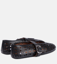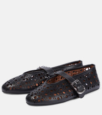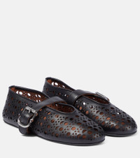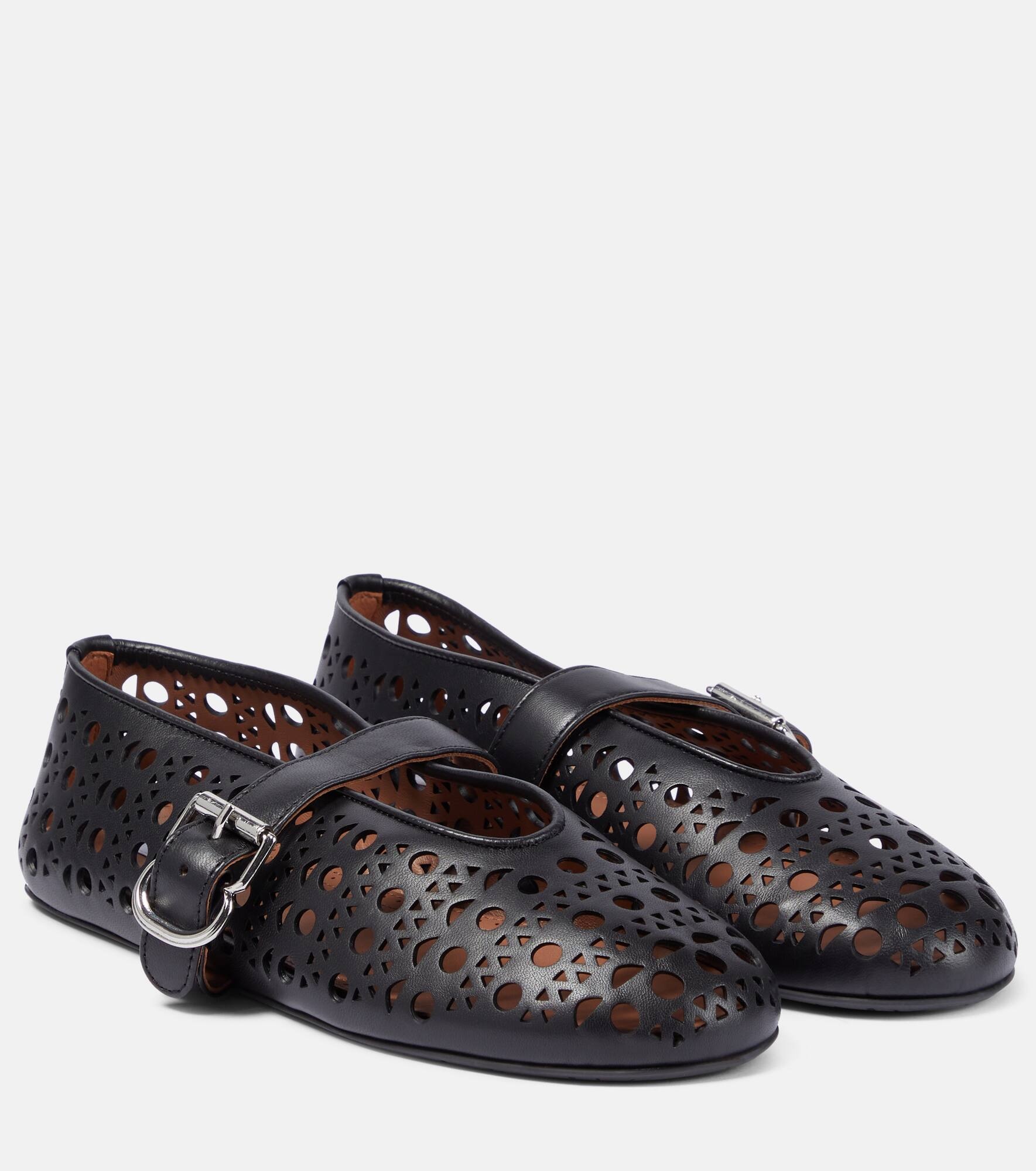 Alaïa's iconic Vienne motif is an openwork laser-cut pattern that's inspired by lace and architecture. It decorates the uppers of these leather ballet flats which are finished with buckle details. Product Details - Sole: leather insole, rubber sole - Closure: buckle fastening - Toe shape: round toe - Upper: leather - Designer color name: Noir - Comes with dust bags - Comes with a box - Made in Italy - Item number: P00809318 Size & Fit - True to size - European sizes