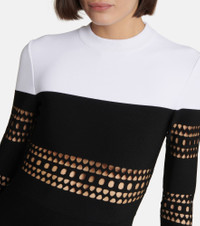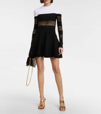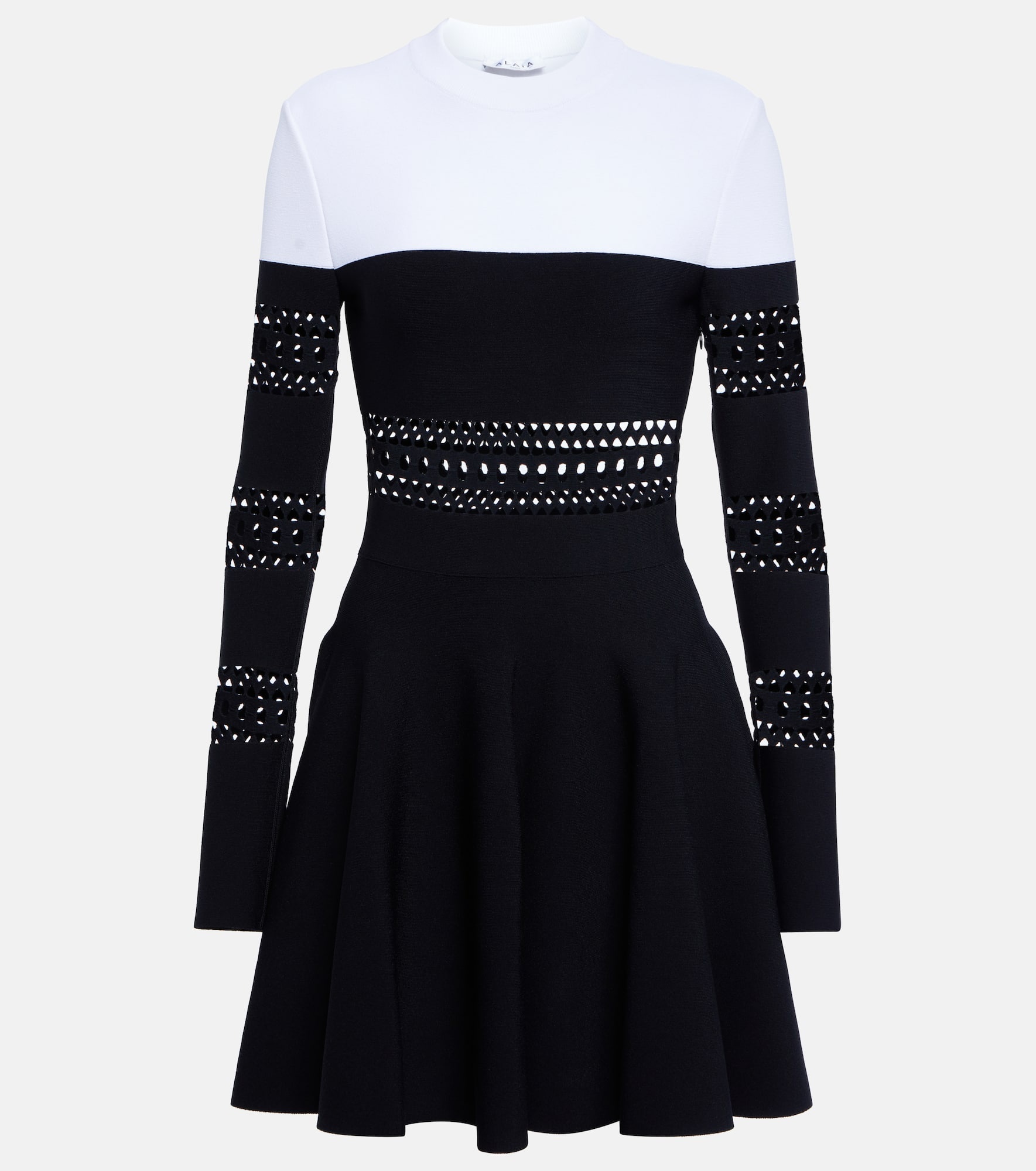 Alaïa is a master of their craft, as proven by this minidress. This piece is finished with the brand-signature Vienne eyelet pattern at the natural waistline and down the sleeves. Product Details - Material: 75% viscose, 25% polyester - Care instructions: dry clean - Made in Italy - Item number: P00753073 Size & Fit - True to size - Cinched waist - Heavy material - The model seen in the picture is 178cm-5'10" and wearing a size FR 36