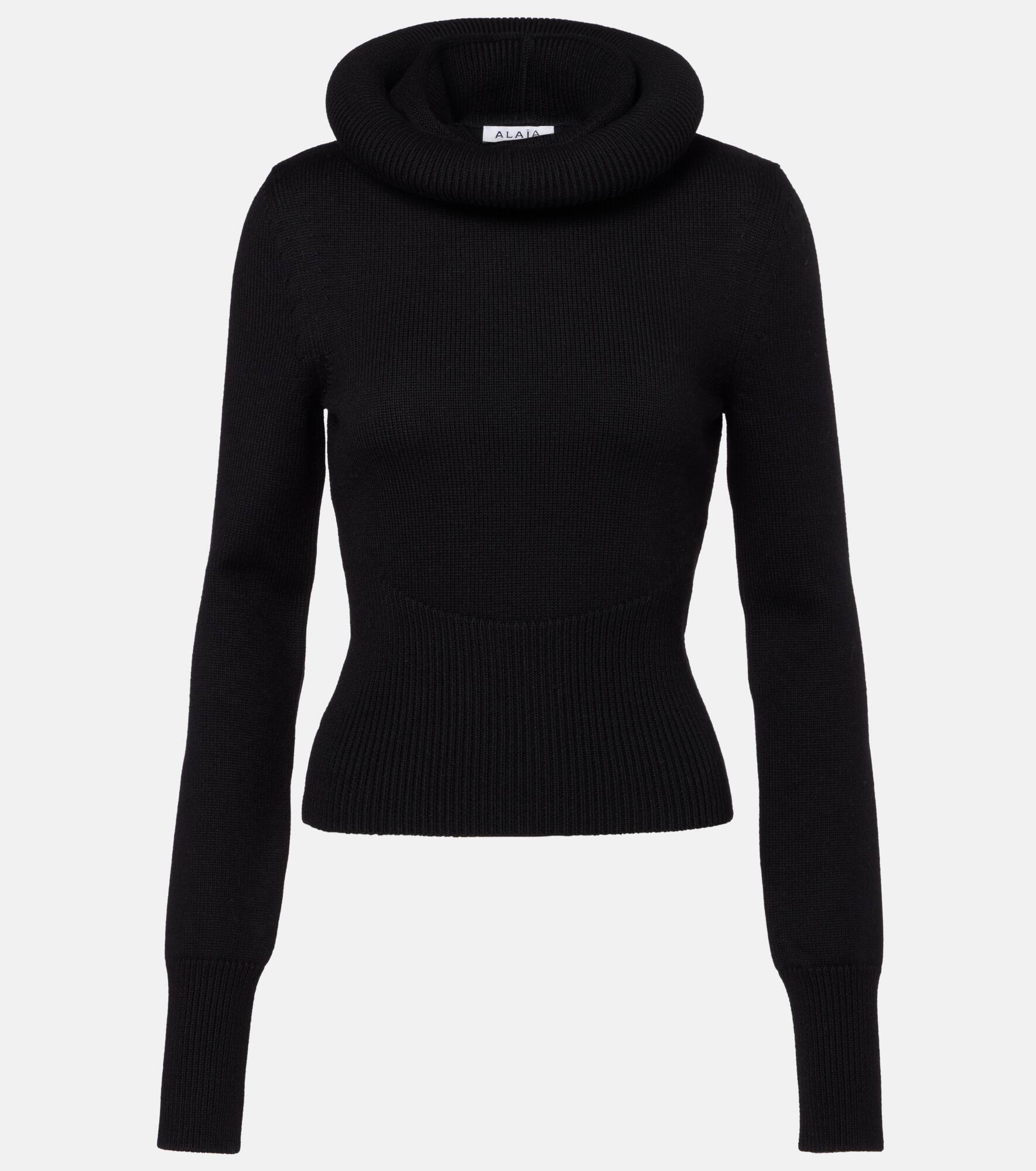 Honoring Azzedine Alaia’s legacy, the maison’s sculptural yet wearable collections hold an artful balance that only the most skilled designers can achieve. Made from virgin wool, this sweater is characterized by its exaggerated turtleneck that can be worn as a hood. Product Details - Material: 100% virgin wool - Care instructions: dry clean - Made in Italy - Designer color name: Noir Alaia - Item color: black - Cuff: ribbed - Hem: ribbed - Item number: P01084966 Size & Fit - True to size - Fitted - Stretchy fabric - Falls to the hip - The model seen in the picture is 178cm-5'10" and wearing a size FR 36