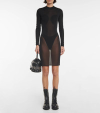 An elegant base layer, this minidress from Alaïa is designed for a second-skin fit. It's made from a soft knitted voile with a semi-sheer look. - material: 76% viscose, 24% polyamide - care instructions: dry clean - Made in Italy - Designer colour name: Noir Alaia