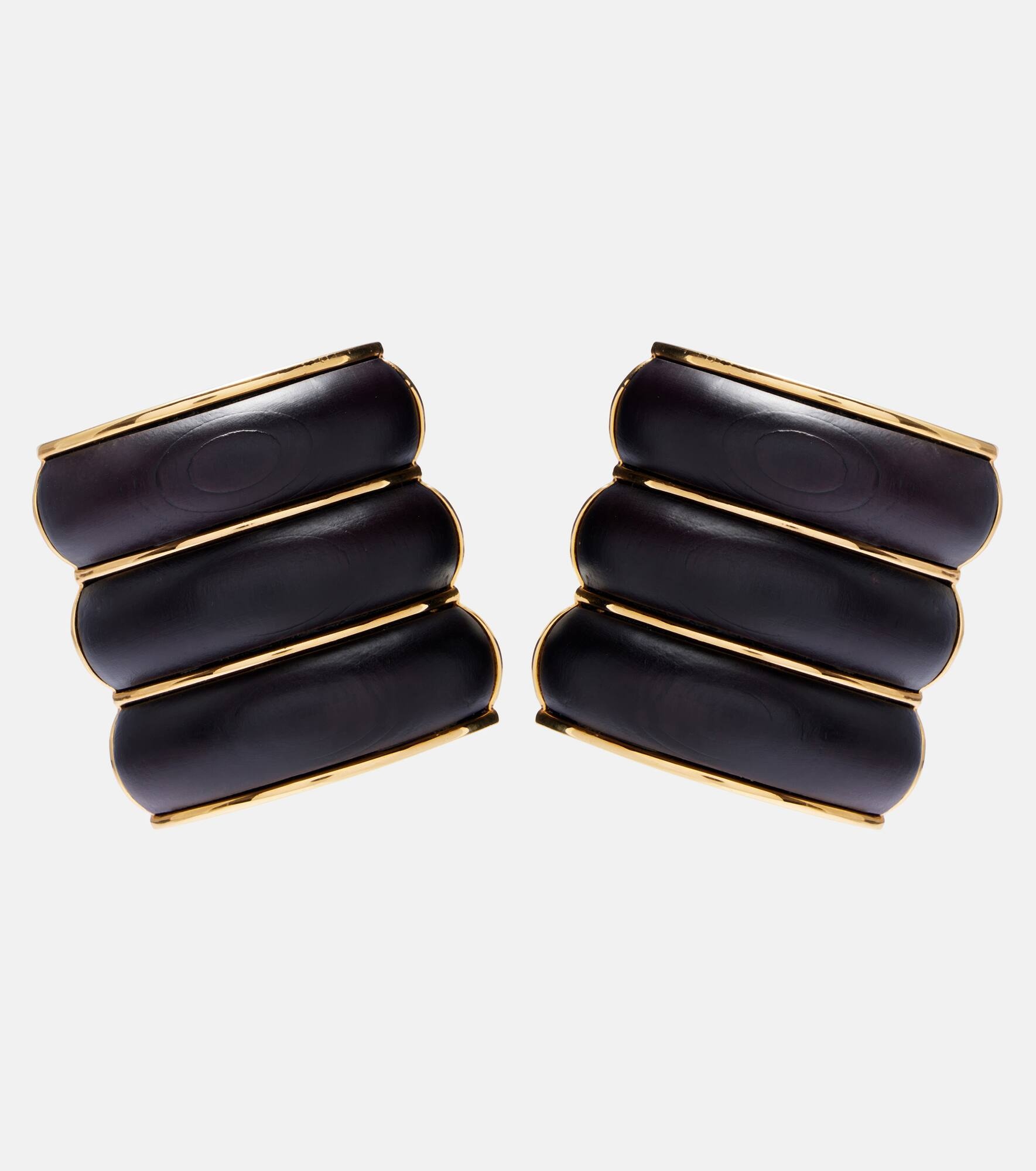 Product Details - Material: 100% wood - Care instructions: spot clean - Made in Italy - Designer color name: Marron - Item color: brown - Material II: 100% brass - Closure: clip fastening - Item number: P01058172 Size & Fit - Length 4cm-1.5" - Width 4cm-1.5"