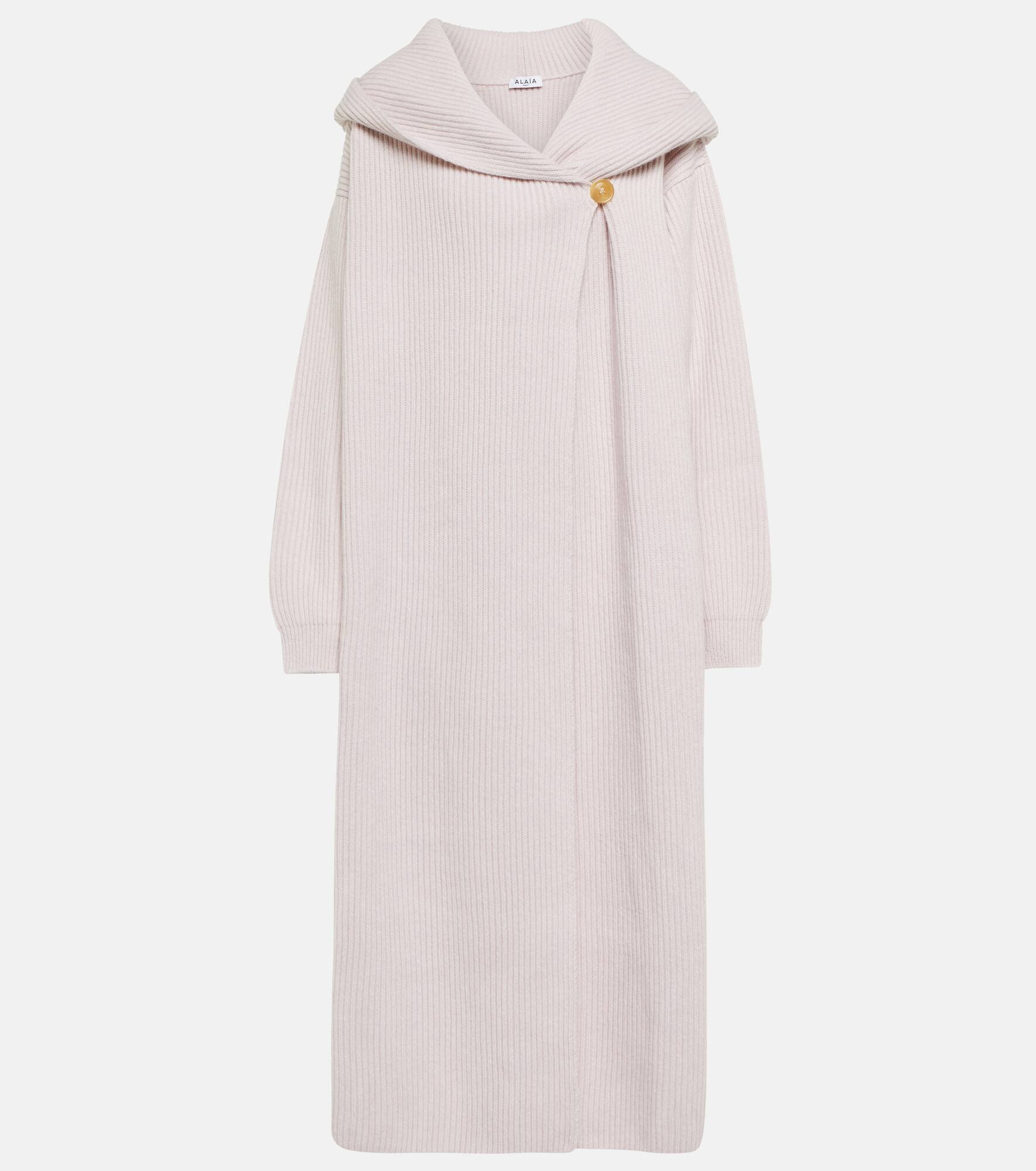 In an insulating longline silhouette, this hooded cardigan from Alaïa secures with an an off-center single button fastening. - material: 92% wool, 8% cashmere - care instructions: dry clean - buttoned front - Made in Italy - hood - Designer colour name: Poudre