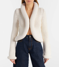Upholding the legacy of Azzedine Alaia, the maison’s designs achieve an artful balance between sculptural and wearable. This cardigan is crafted in Italy from a soft wool blend and boasts a hook-fastening front. Product Details - Material: 65% wool, 35% polyamide - Care instructions: dry clean - Made in Italy - Color: white - Designer color name: Blanc - Closure: hook-fastening front - Item number: P01112320 Size & Fit - True to size - Cinched waist - Slightly stretchy fabric - Slightly cropped - The model seen in the picture is 178cm-5'10" and wearing a size FR 34