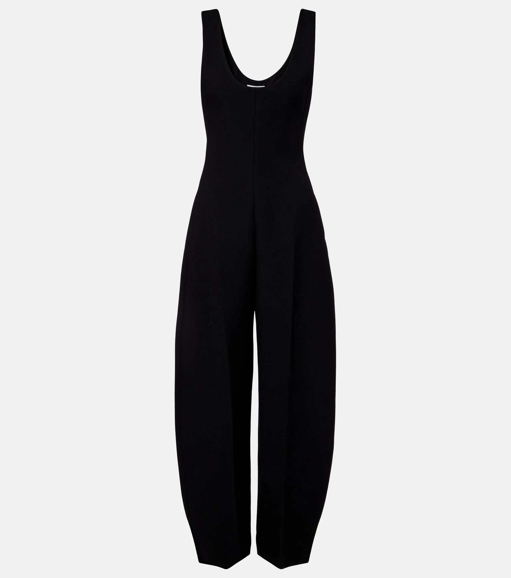 Upholding the legacy of Azzedine Alaia, the maison’s designs achieve an artful balance between sculptural and wearable. Crafted in Italy from a wool-blend, this jumpsuit boasts a flowing, wide-leg silhouette that cinches in at the waist. Product Details - Material: 94% wool, 6% polyamide - Care instructions: dry clean - Made in Italy - Color: black - Designer color name: Noir - Closure: concealed zipped side - Pocket lining: 100% cotton - Item number: P01119231 Size & Fit - True to size - Cinched waist - Non-stretchy fabric - Wide-leg - Please note: small cups - If you wear a C cup or bigger, we recommend trying one size larger - The model seen in the picture is 178cm-5'10" and wearing a size FR 34
