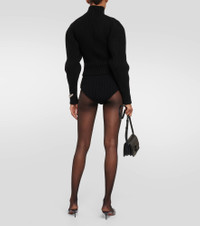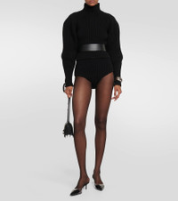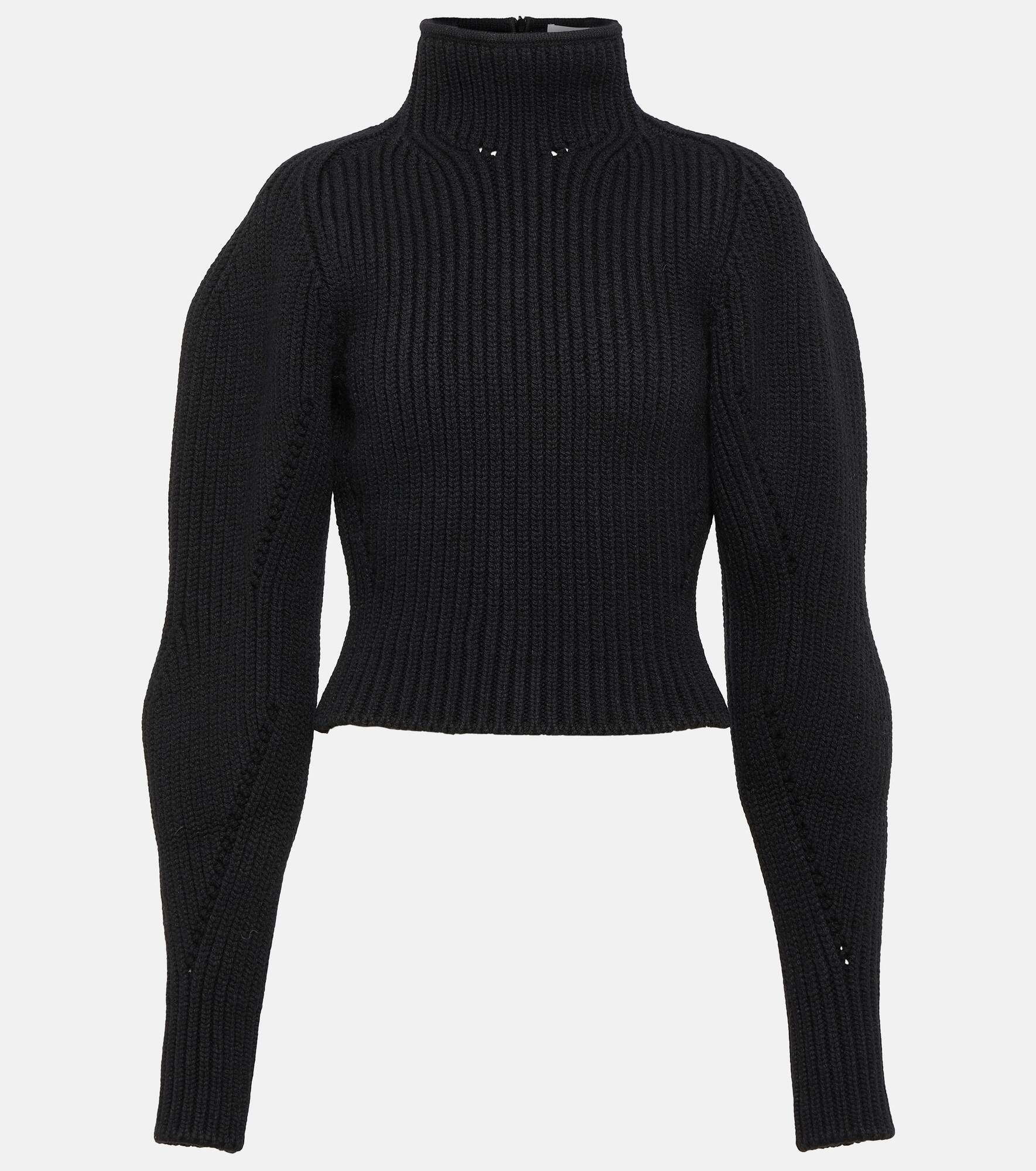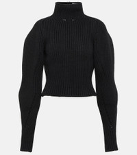 Showcasing Alaïa’s affinity for sculptural silhouettes, this sweater is shaped with a fitted bodice, turtleneck, and curved volume sleeves. It’s expertly ribbed-knit from luxurious wool and cashmere-blend. Product Details - Material: 2% polyamide, 90% wool, 8% cashmere - Care instructions: dry clean - Made in Italy - Designer color name: Noir Alaia - Item number: P00846486 Size & Fit - True to size - Cinched waist - Heavy material - Thick material - Slightly cropped - The model seen in the picture is 178cm-5'10" and wearing a size FR 36