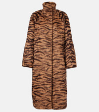 Upholding the legacy of Azzedine Alaia, the maison’s collections achieve an artful balance between sculptural and wearable. Made from a plush wool-blend fabric, this coat is a single-breasted piece characterized by its all-over zebra-print jacquard pattern. Product Details - Material: 52% llama wool, 43% wool, 5% polyamide - Care instructions: dry clean - Made in Italy - Color: brown - Designer color name: Noir/Caramel - Item color: beige, black - Lining: 100% polyamide - Pocket lining: 100% cotton - Closure: snap-buttoned front - Pockets: welt pockets - Item number: P01118696 Size & Fit - True to size - Oversized - Non-stretchy fabric - Height of model is 178cm-70" and wears a size FR 34