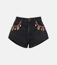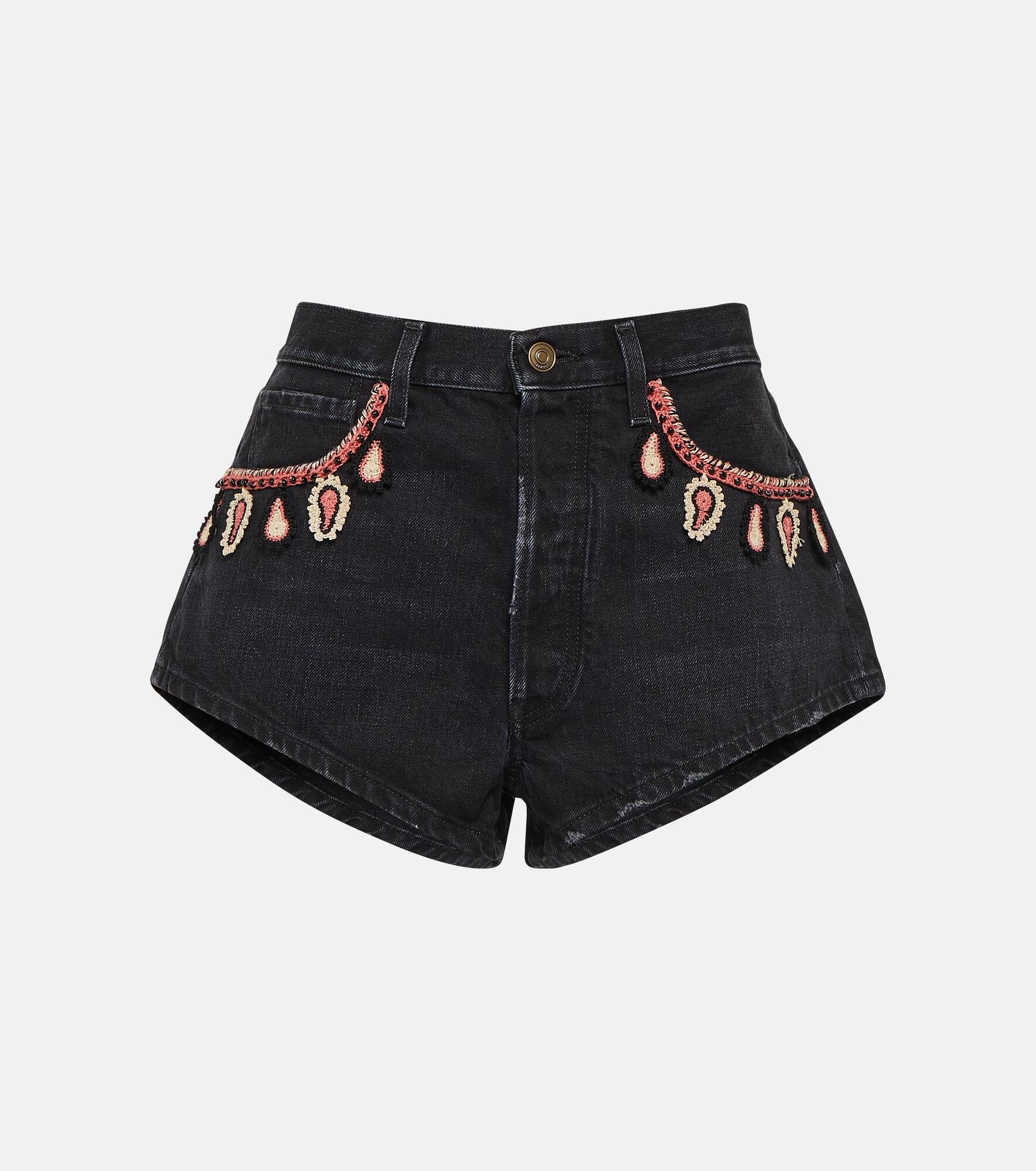 Embroidered denim shorts