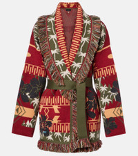 The Hibiscus Bloom cardigan from Alanui is crafted from soft virgin wool in a double jacquard knit. Inspired by Hawaii's native flower, this stylish piece features frayed edges, slit pockets, and a removable belt. Product Details - Material: 100% virgin wool - Care instructions: dry clean - Made in Italy - Designer color name: Ruby/Multicolor - Item color: multicolor - Pockets: side slit pockets - Self-tie belt - Item number: P01058846 Size & Fit - True to size - Dropped shoulders - Loose fit, comes with belt - Slightly stretchy fabric - Falls below the hip - The model seen in the picture is 178cm-5'10" and wearing a size XS