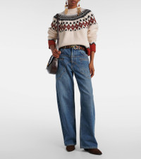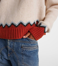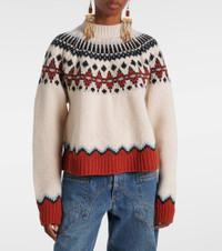 Crafted from virgin wool, the cozy Sweet Winter sweater from Alanui honors classic Nordic style with a modern motif in jacquard knit. This design features a mockneck and ribbed trims for added comfort. Product Details - Material: 100% virgin wool - Care instructions: dry clean - Made in Italy - Designer color name: Brick/Multicolor - Item color: beige - Collar: crewneck - Hem: ribbed - Cuff: ribbed - Item number: P01058859 Size & Fit - True to size - Designed for a loose fit - Slightly stretchy fabric - Falls to the hip - The model seen in the picture is 178cm-5'10" and wearing a size XS