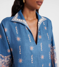 A contemporary brand with an artisanal focus, Alemais celebrates the art of fashion through an eclectic mix of patterns and prints. The Acacia minidress is made from linen and features a relaxed silhouette with a V-neckline and a printed motif. Product Details - Material: 100% linen - Care instructions: hand wash cold - Made in China - Designer color name: Blue - Item color: blue - Collar: V-neck - Pockets: patch pockets - Item number: P01124590 Size & Fit - True to size - For a closer fit, we recommend taking one size down - Dropped shoulders - Designed for a loose fit - Non-stretchy fabric - The model seen in the picture is 178cm-5'10" and wearing a size UK 6