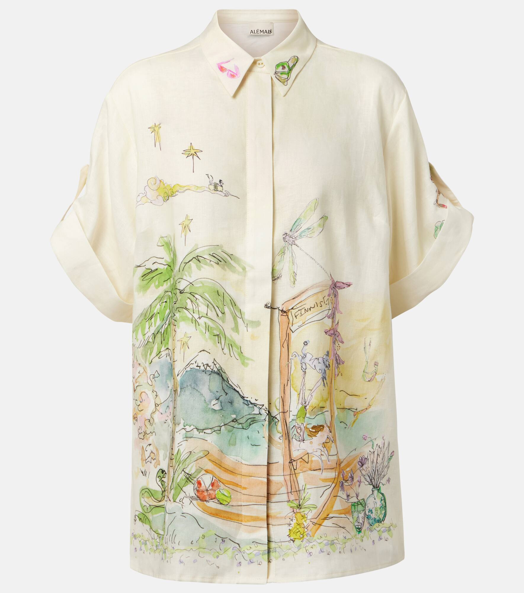 A contemporary brand with an artisanal focus, Alemais celebrates the art of fashion through an eclectic mix of patterns and prints - exemplified by the Anouk shirt. Made from lightweight linen, this short-sleeved style is playful and elegant at once. Product Details - Material: 100% linen - Care instructions: hand wash - Made in China - Designer color name: Cream - Item color: ivory, multicolor - Closure: concealed buttoned front - Item number: P01063591 Size & Fit - True to size - Dropped shoulders - Designed for a loose fit - Non-stretchy fabric - Falls below the hip - The model seen in the picture is 178cm-5'10" and wearing a size UK 6