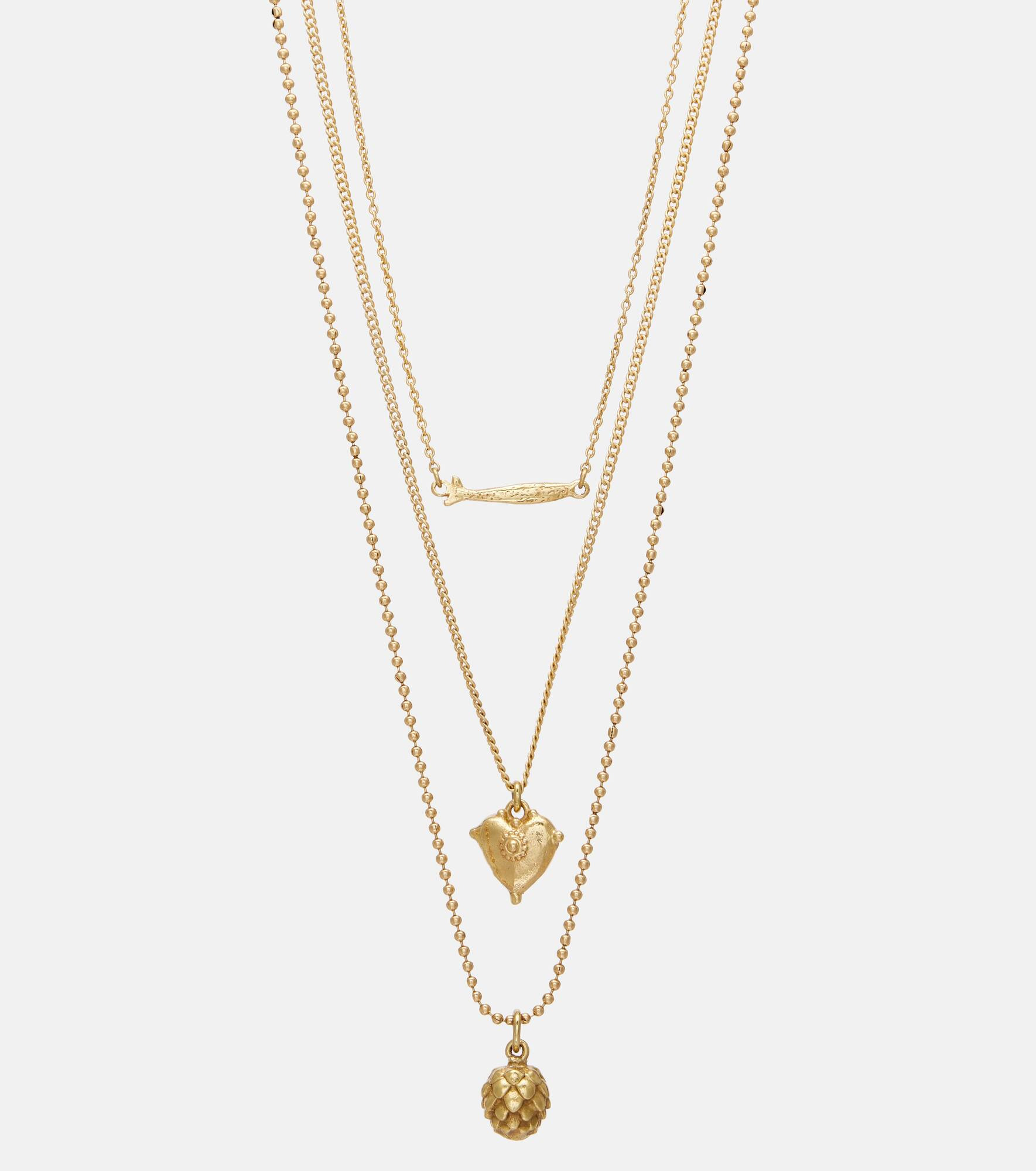 This necklace from Alemais features a layered silhouette with three gold-toned chains, adding a romantic touch to the look. The design is adorned with charms that showcase a tropical motif, making it perfect for the warm season. Product Details - Material: brass - Made in Indonesia - Item color: gold - Closure: lobster-clasp fastening - Item number: P01071498 Size & Fit - Length when open 42cm-16.5" - Width 0,2cm-0" - Pendant length 1,5cm-0.5" - Pendant width 2cm-1"