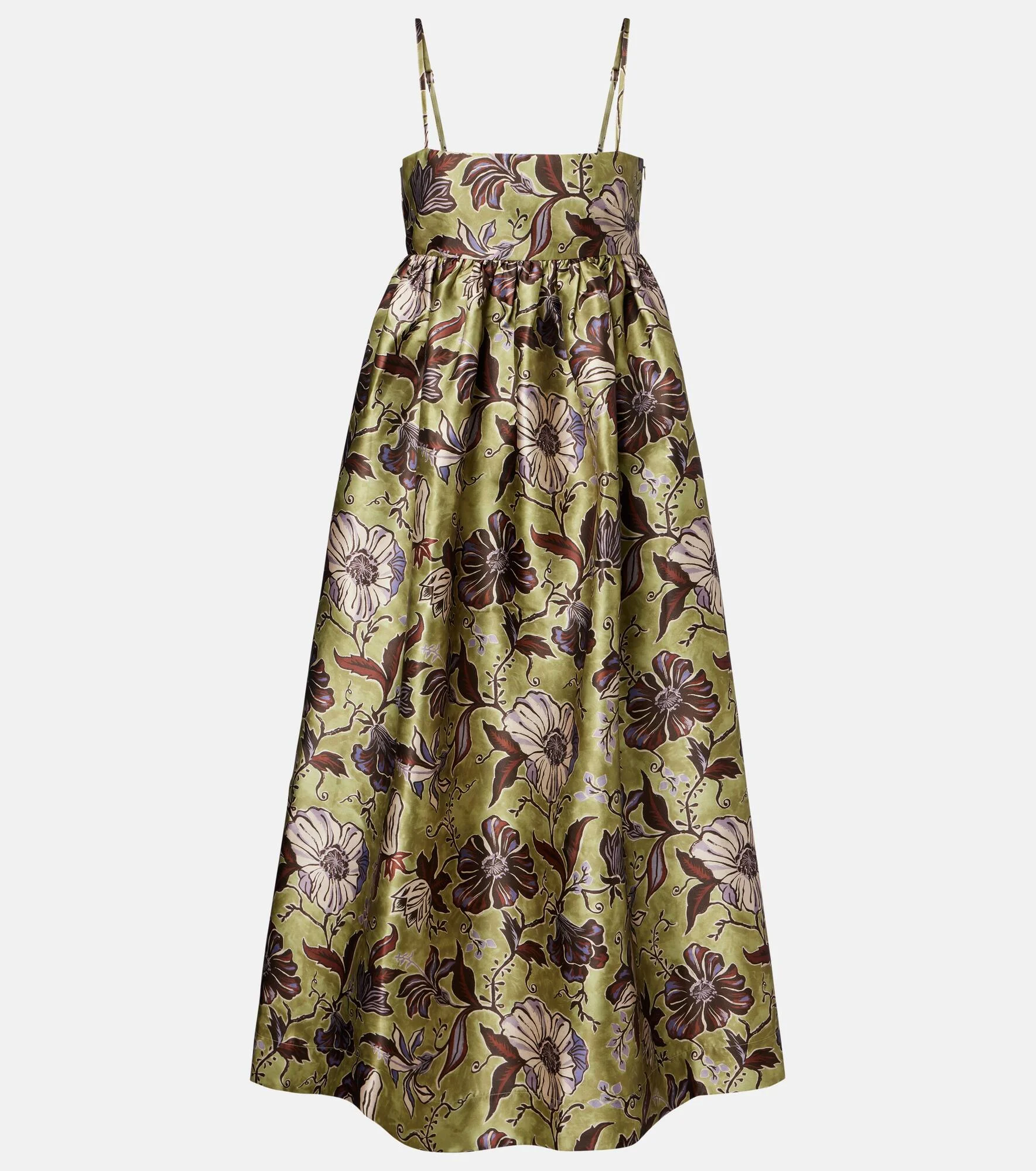 A contemporary brand with an artisanal focus, Alemais celebrates the art of fashion through an eclectic mix of patterns and prints. Voasting a floral motif, the Citron midi dress features a voluminous skirt, a square neckline, and self-ties at the back. Product Details - Material: 88% polyester (recycled), 12% polyester - Care instructions: machine wash at 30 degrees - Made in China - Designer color name: Multi - Item color: green, multicolor - Lining: 100% cotton - Closure: concealed zipped back - Self-tie back - Adjustable shoulder straps - Pockets: side slit pockets - Item number: P01124581 Size & Fit - True to size - Low back - Designed for a loose fit - Non-stretchy fabric - The model seen in the picture is 178cm-5'10" and wearing a size UK 6
