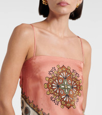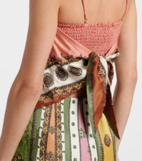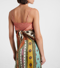 A contemporary brand with an artisanal focus, Alemais celebrates the art of fashion through an eclectic mix of patterns and prints. The Contina top is designed with a triangle silhouette and features a self-tie back and a colorful motif. Product Details - Material: 100% viscose - Care instructions: dry clean - Made in China - Designer color name: Multi - Item color: multicolor - Lining: 100% viscose - Adjustable shoulder straps - Self-tie back - Item number: P01124484 Size & Fit - True to size - Elasticated top - Cinched waist - Non-stretchy fabric - Cropped - The model seen in the picture is 178cm-5'10" and wearing a size UK 6