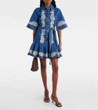 A contemporary brand with an artisanal focus, Alemais celebrates the art of fashion through an eclectic mix of patterns and prints. This denim minidress features an intricate paisley pattern in contrast embroidery. Product Details - Material: 100% cotton - Care instructions: machine wash at 30 degrees - Made in China - Designer color name: Indigo - Item color: blue, white - Hardware color: silver - Collar: classic (Straight point) - Closure: partially buttoned front - Belt loops - Self-tie belt - Item number: P01096129 Size & Fit - True to size - Loose fit, comes with belt - Non-stretchy fabric - The model seen in the picture is 178cm-5'10" and wearing a size UK 6