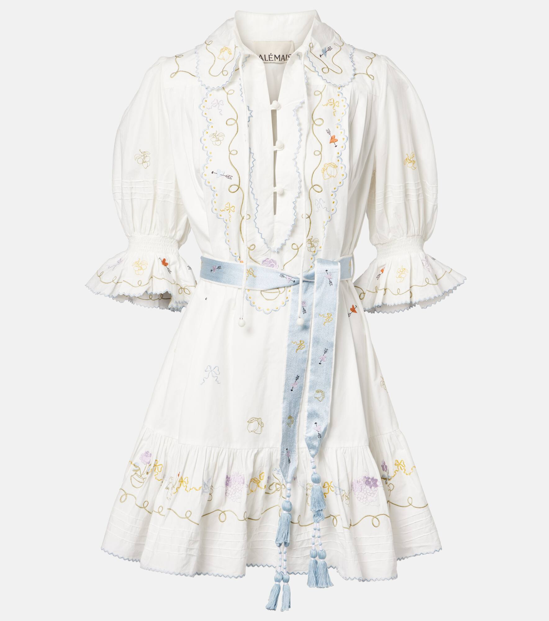 A contemporary brand with an artisanal focus, Alemais celebrates the art of fashion through an eclectic mix of patterns. Made from breezy cotton, the Giulia minidress features playful embroidered motifs and a self-tie belt. Product Details - Material: 100% cotton (organic) - Care instructions: hand wash - Made in India - Designer color name: Cream - Item color: white, blue - Closure: partially buttoned front - Self-tie collar - Cuff: elasticated, ruffled - Belt loops - Detachable belt - Item number: P01096127 Size & Fit - True to size - Loose fit, comes with belt - Non-stretchy fabric - The model seen in the picture is 178cm-5'10" and wearing a size UK 6