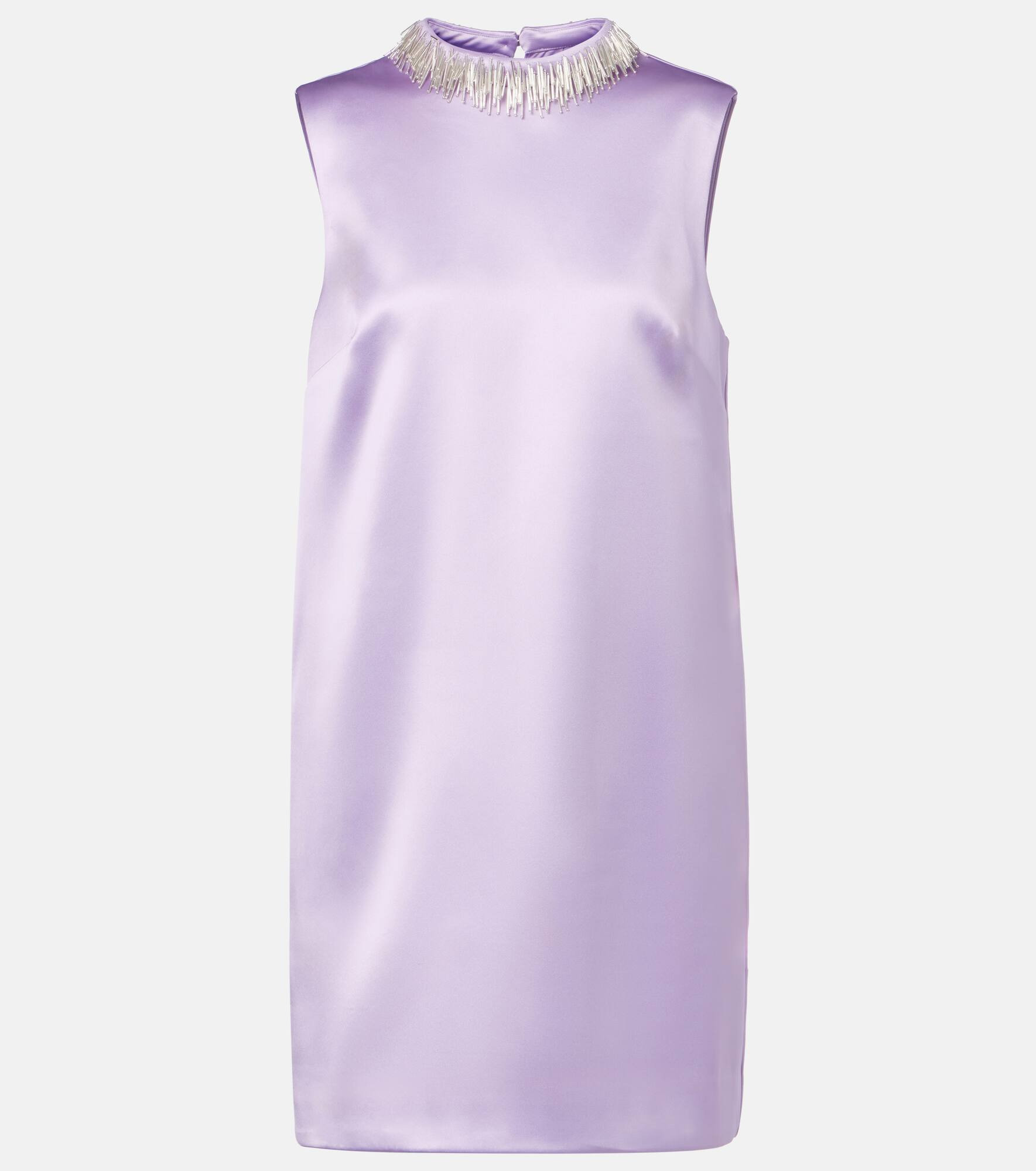 Add the Laverne minidress from Alemais to your day-to-night collection. Made from satin, this style comes in a straight silhouette and is defined by dazzling beaded embellishments at the neckline. Product Details - Material: 97% polyester (recycled), 3% elastane - Care instructions: dry clean - Made in China - Designer color name: Lilac - Item color: purple - Lining: 100% cotton - Hardware color: silver - Closure: hook-fastening back - Item number: P01063685 Size & Fit - True to size - Designed for a loose fit - Non-stretchy fabric - The model seen in the picture is 178cm-5'10" and wearing a size UK 8