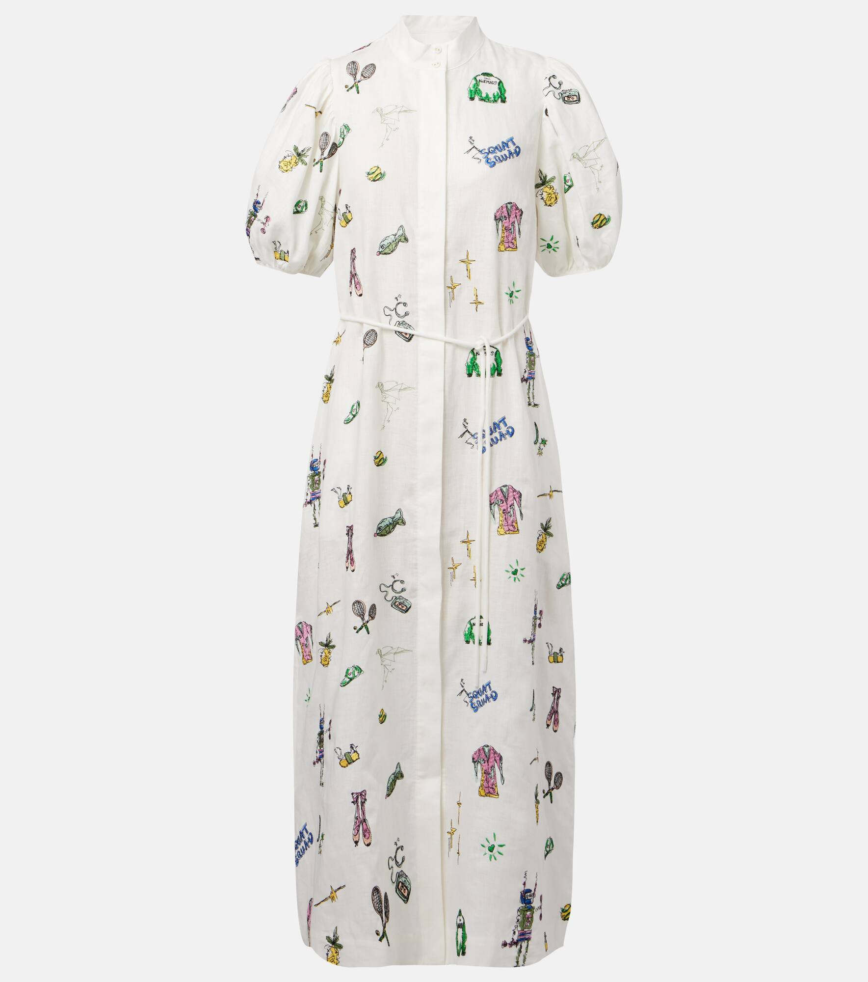 + Anouk Colantoni Play belted embroidered linen-gauze midi shirt dress Cream